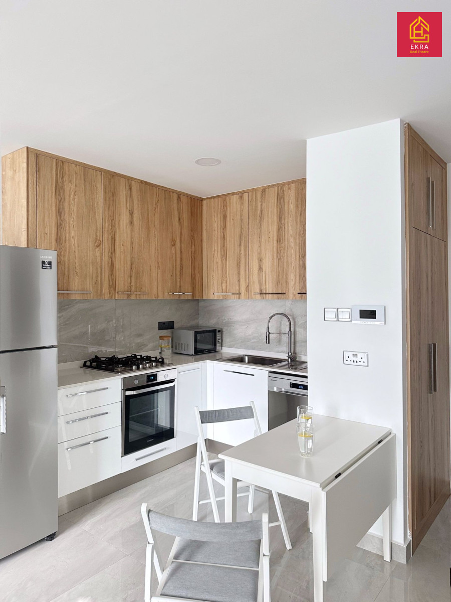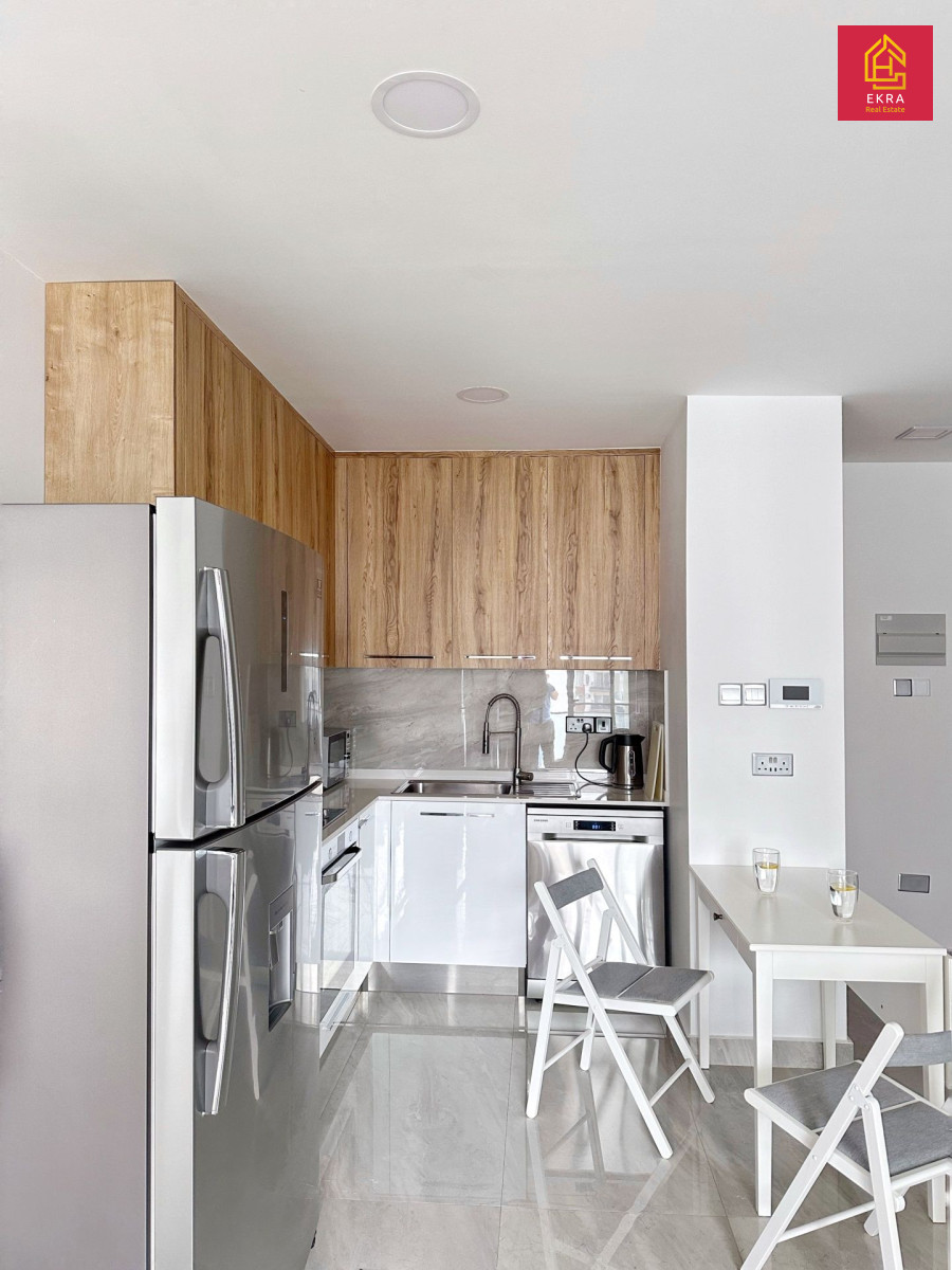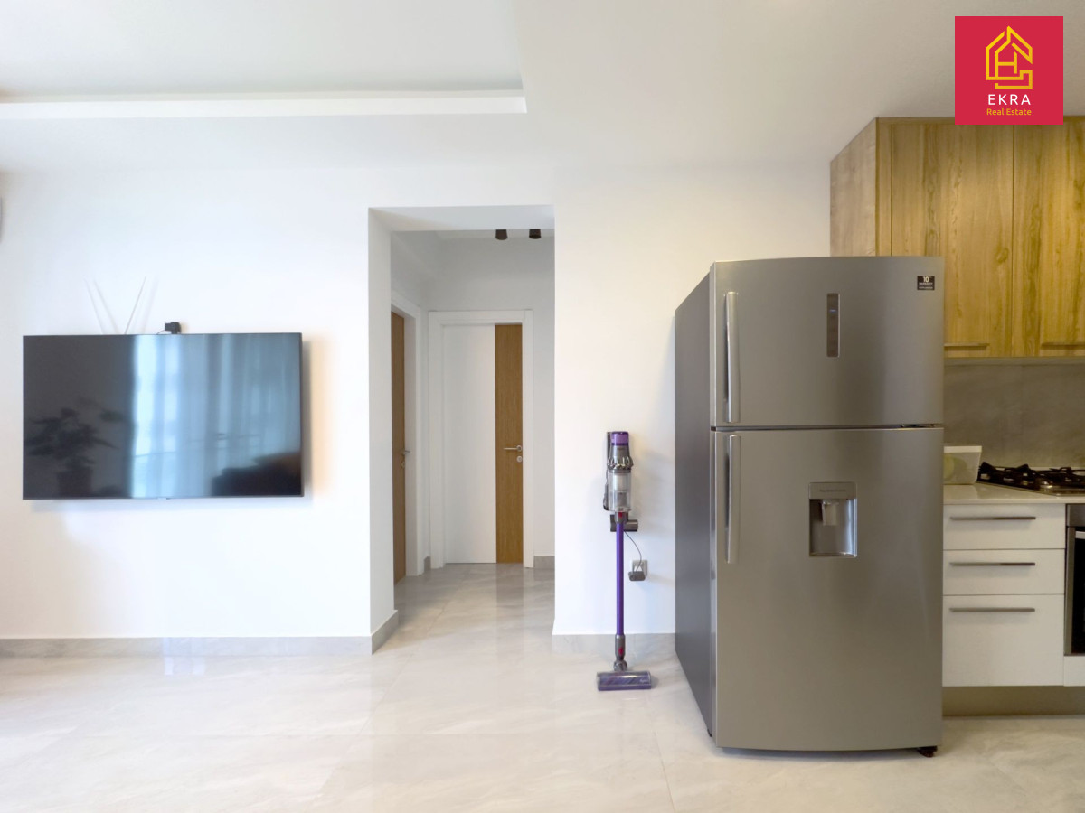 W pełni umeblowane, nowoczesne mieszkanie 3-pokojowe, gotowe do zamieszkania lub wynajmu. Położone w zadbanym kompleksie z basenem, wspólnym tarasem na dachu i widokiem na morze.