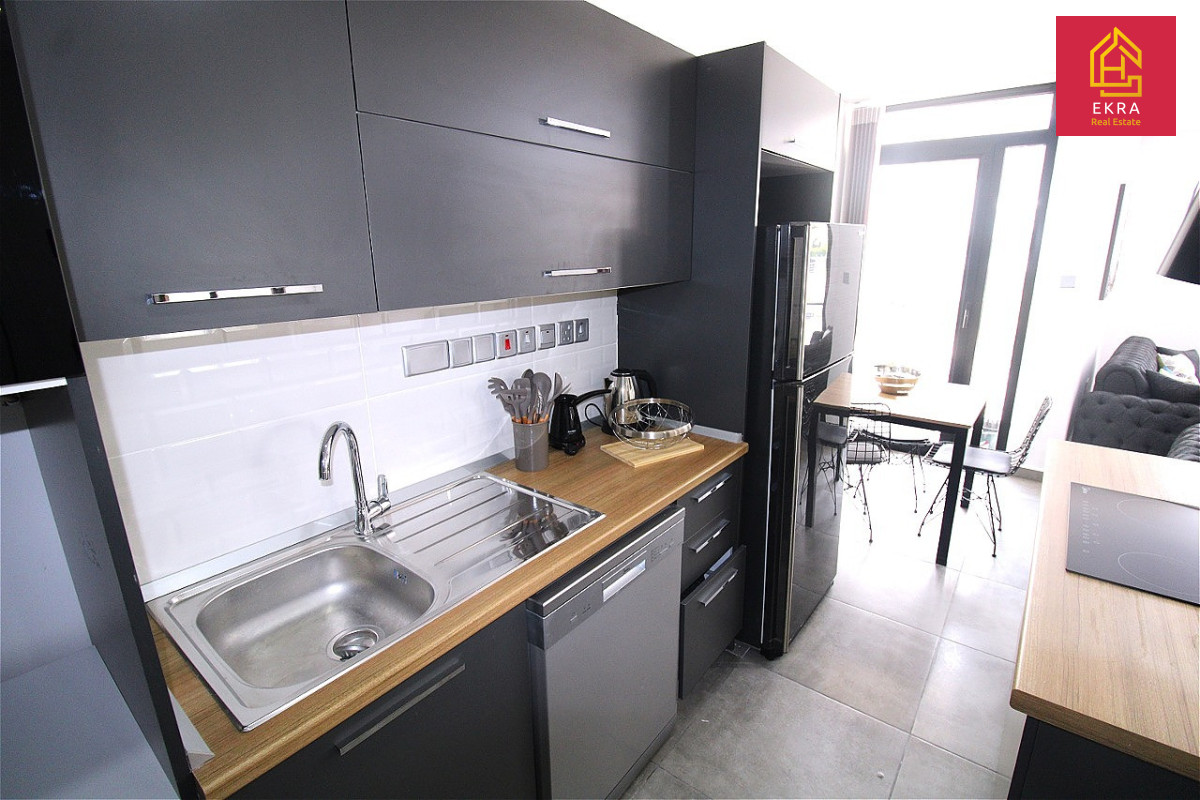 Sypialnia posiada łazienkę en suite oraz dostęp do dużego, prywatnego balkonu. Apartament wyposażony jest w wysokiej jakości meble i sprzęt AGD, dzięki czemu jest gotowy do natychmiastowego zamieszkania lub wynajmu.