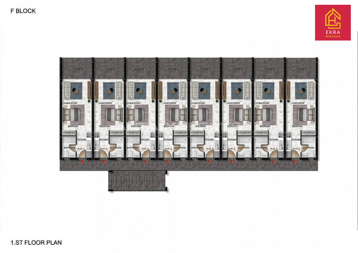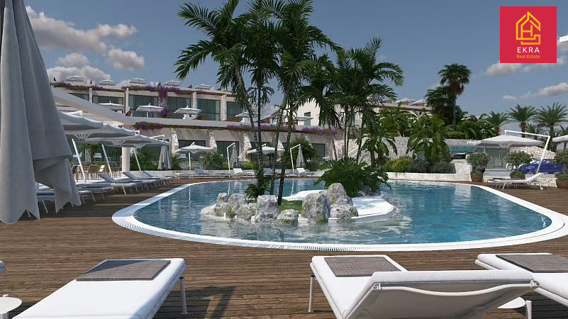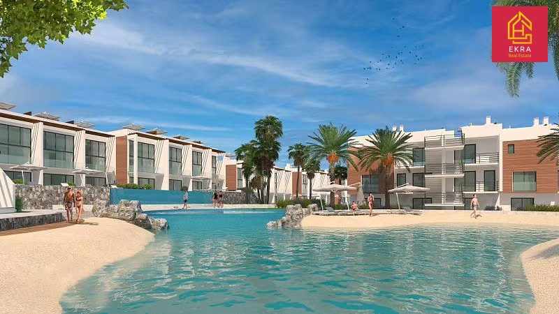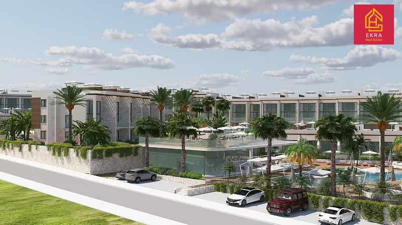 Na sprzedaż nowoczesne studio o powierzchni 43 m² (35 m² powierzchni mieszkalnej + 8 m² tarasu) z prywatnym ogrodem od frontu, położone w luksusowym kompleksie zaledwie 200 metrów od plaży.