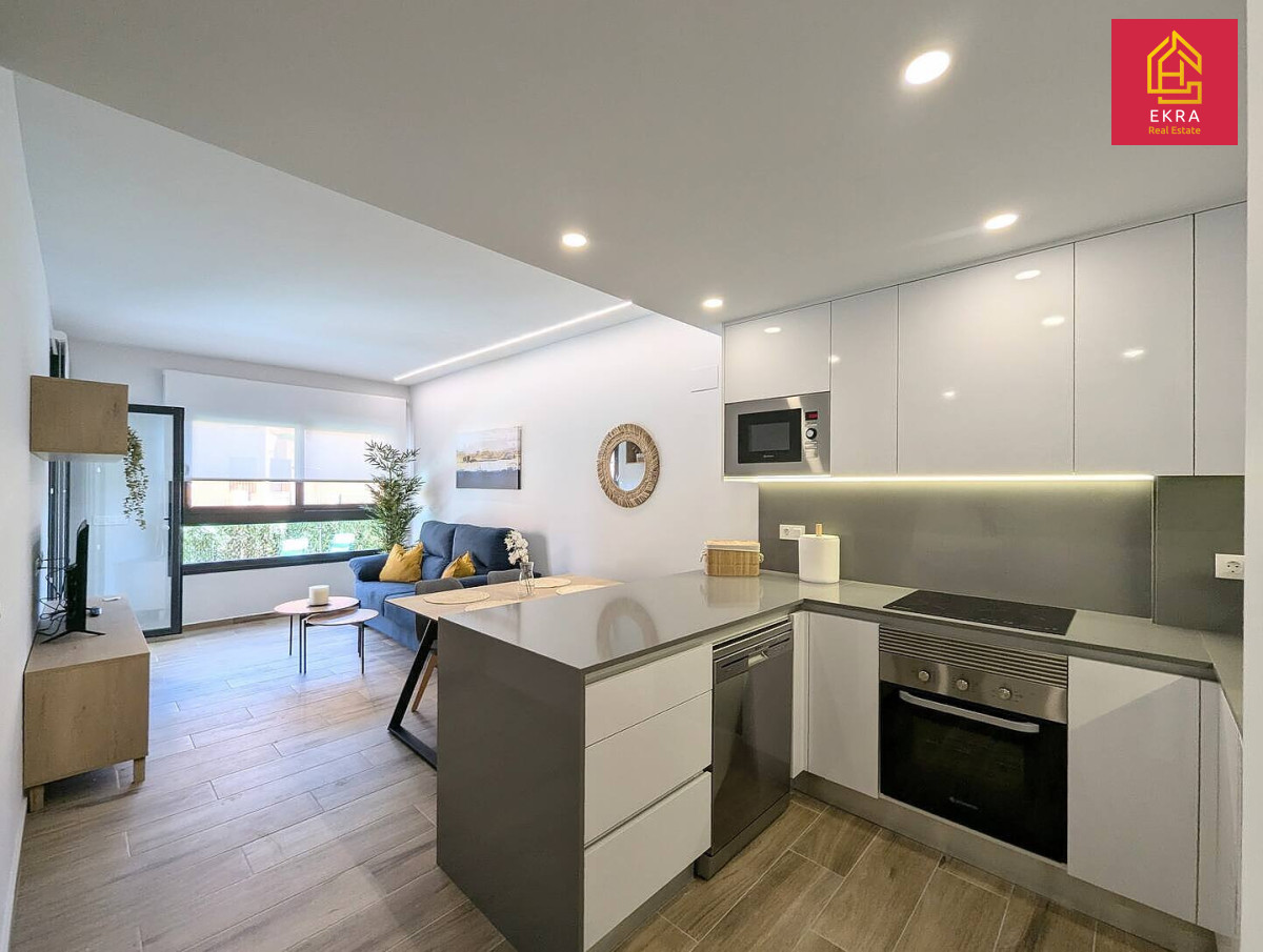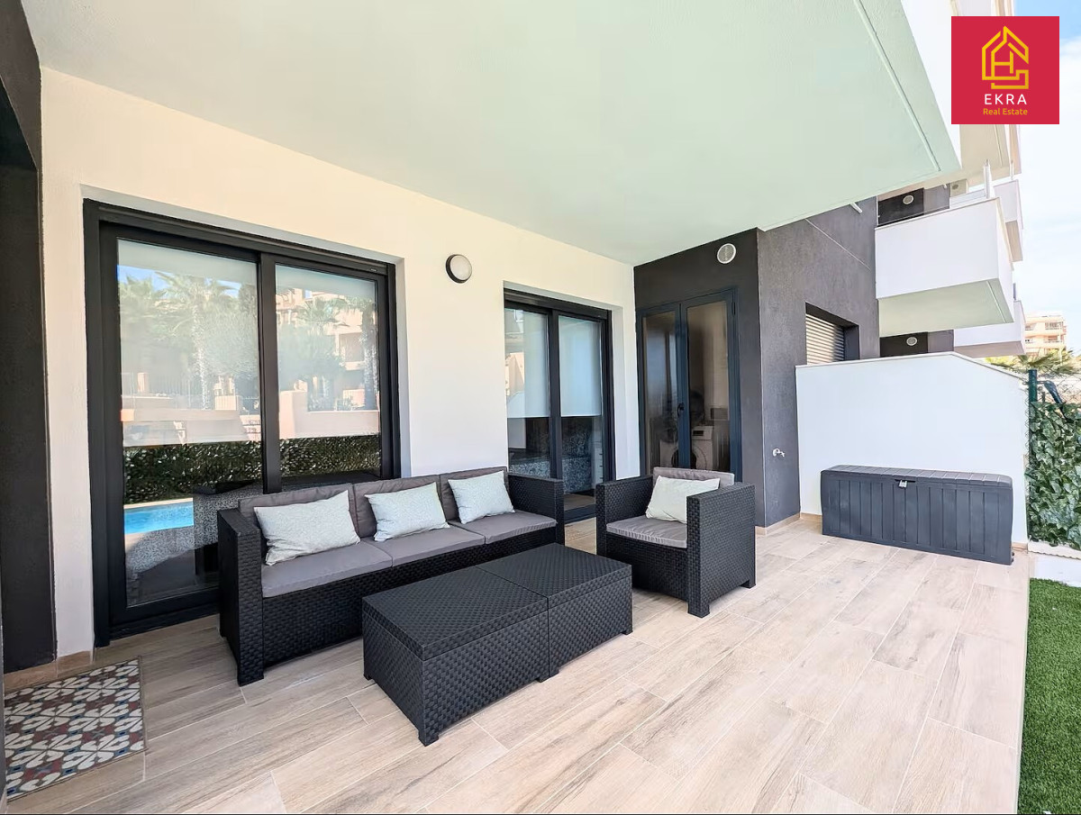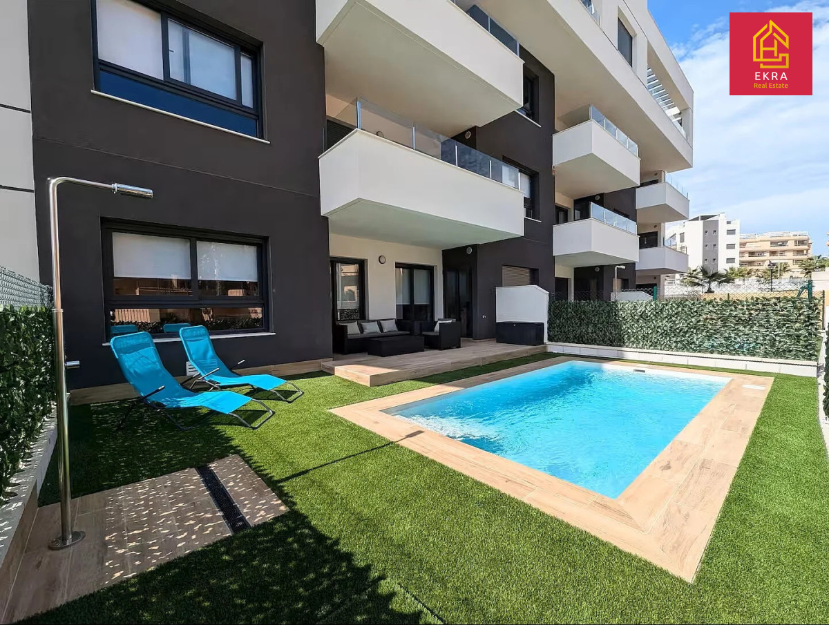 Na sprzedaż nowoczesny apartament na parterze z prywatnym ogrodem i basenem, położony w prestiżowej dzielnicy Villamartín na Costa Blanca.