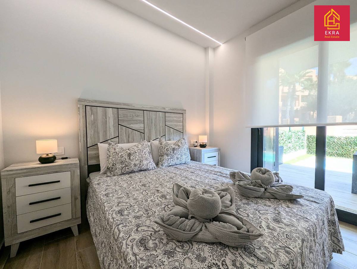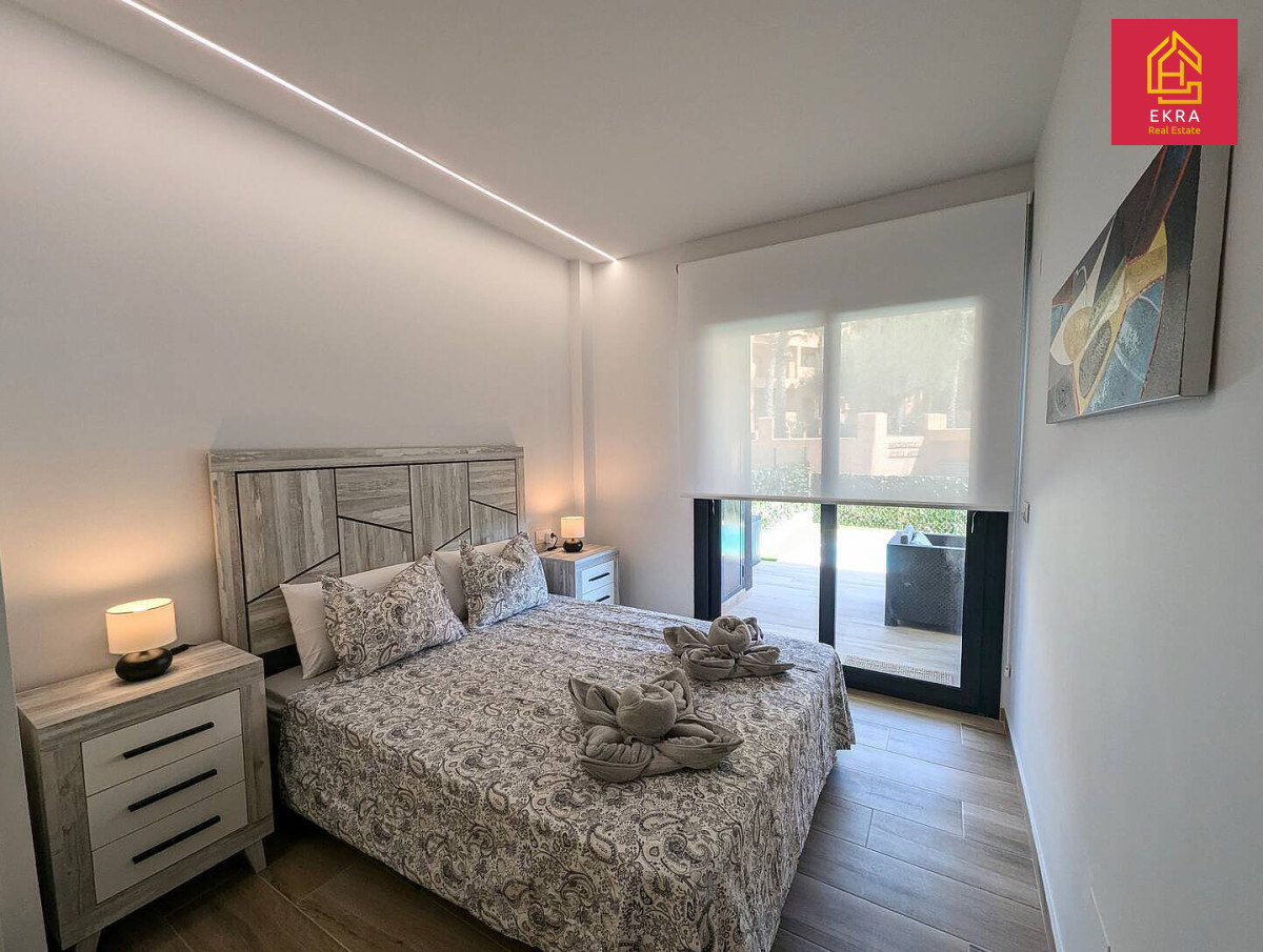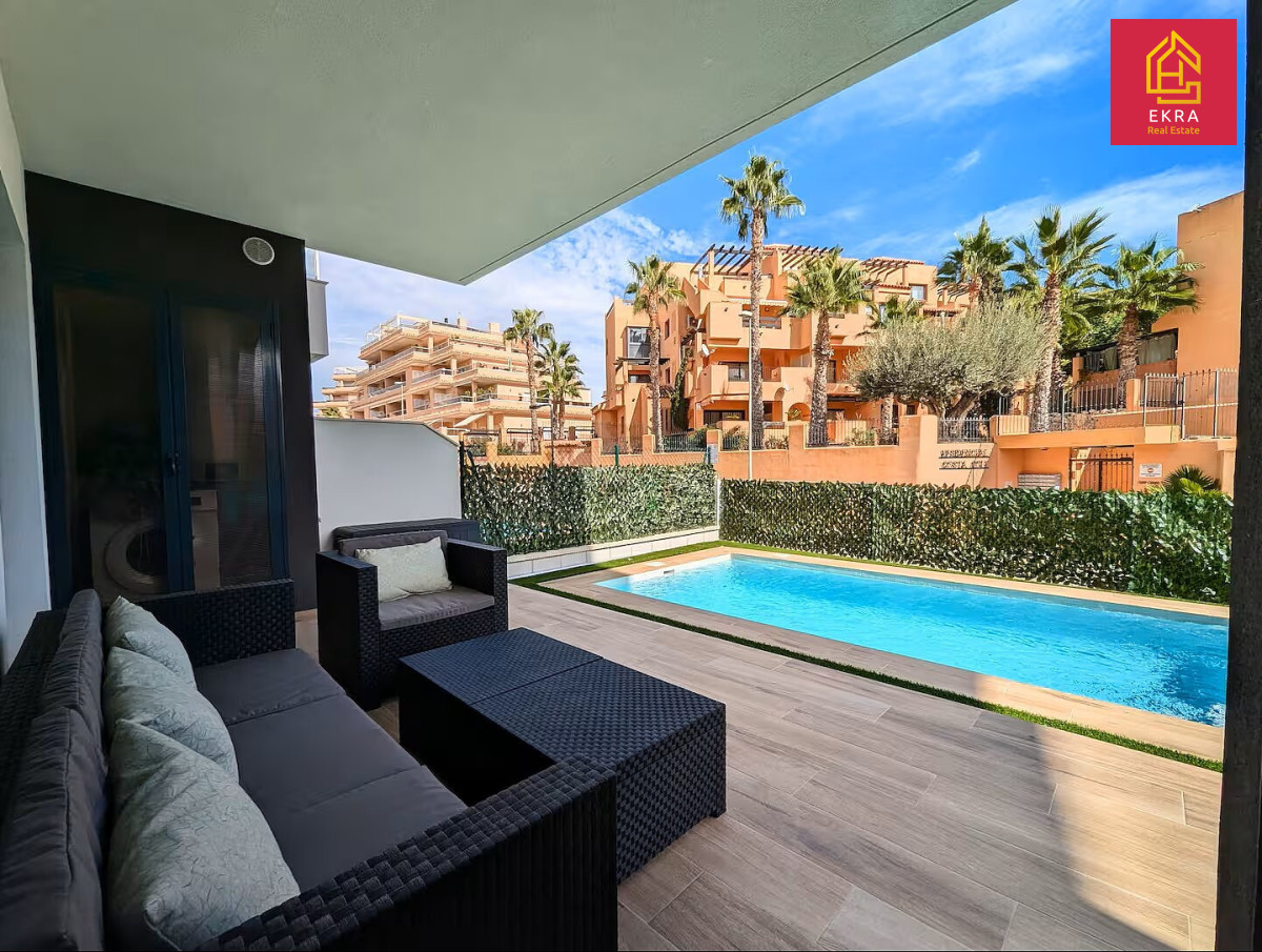 Na sprzedaż nowoczesny apartament na parterze z prywatnym ogrodem i basenem, położony w prestiżowej dzielnicy Villamartín na Costa Blanca.