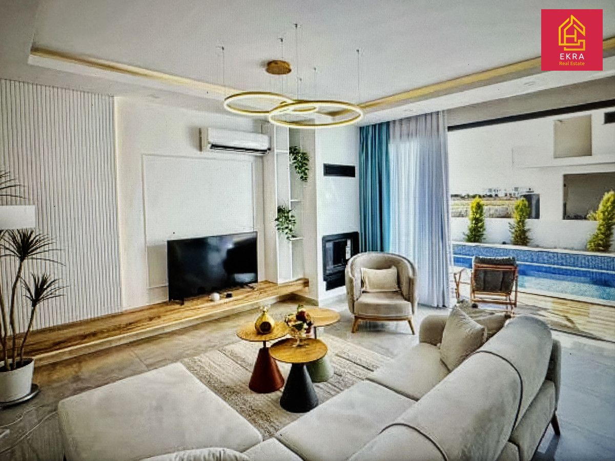 Na sprzedaż wyjątkowa, w pełni wykończona willa z prywatnym basenem, położona w nowoczesnym kompleksie mieszkaniowym w spokojnej i zielonej części Iskele - zaledwie 900 metrów od plaży i 15 minut jazdy od centrum Famagusty.