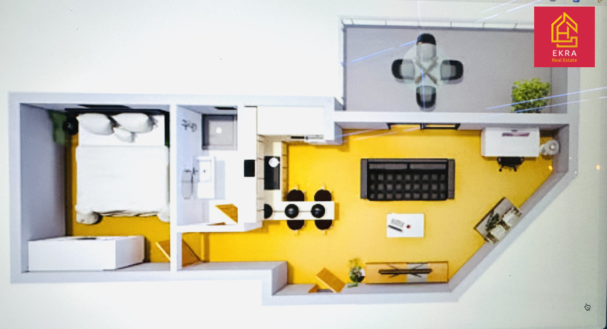 Układ: 1 sypialnia + salon z aneksem kuchennym