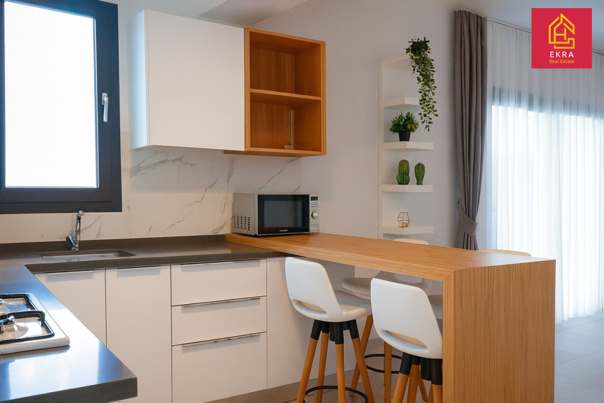 Na sprzedaż mieszkanie typu 1+1 z przestronnym balkonem, zlokalizowane w nowoczesnym kompleksie mieszkaniowym w miejscowości Boaz, w regionie Famagusta na Cyprze Północnym.