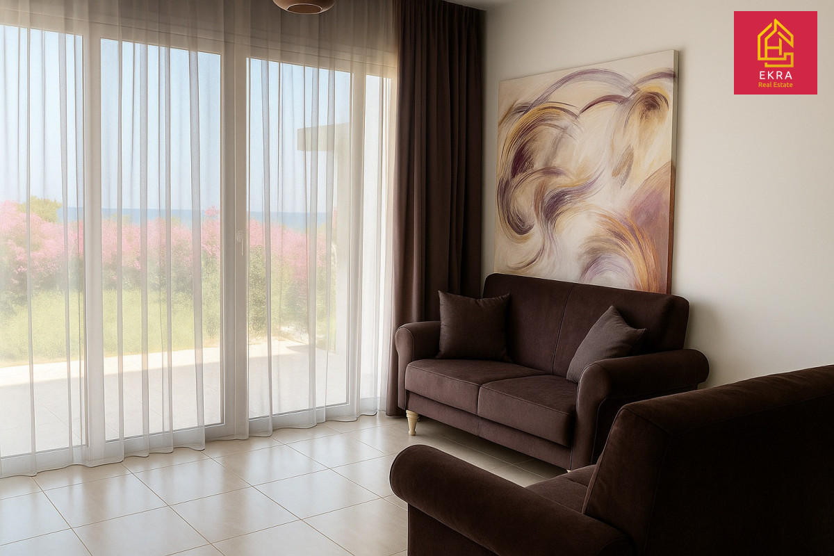 Na sprzedaż komfortowe, w pełni umeblowane mieszkanie 2+1 o powierzchni 72 m² z dużym tarasem 18 m², położone w jednym z najpiękniejszych kompleksów mieszkaniowych Cypru Północnego.