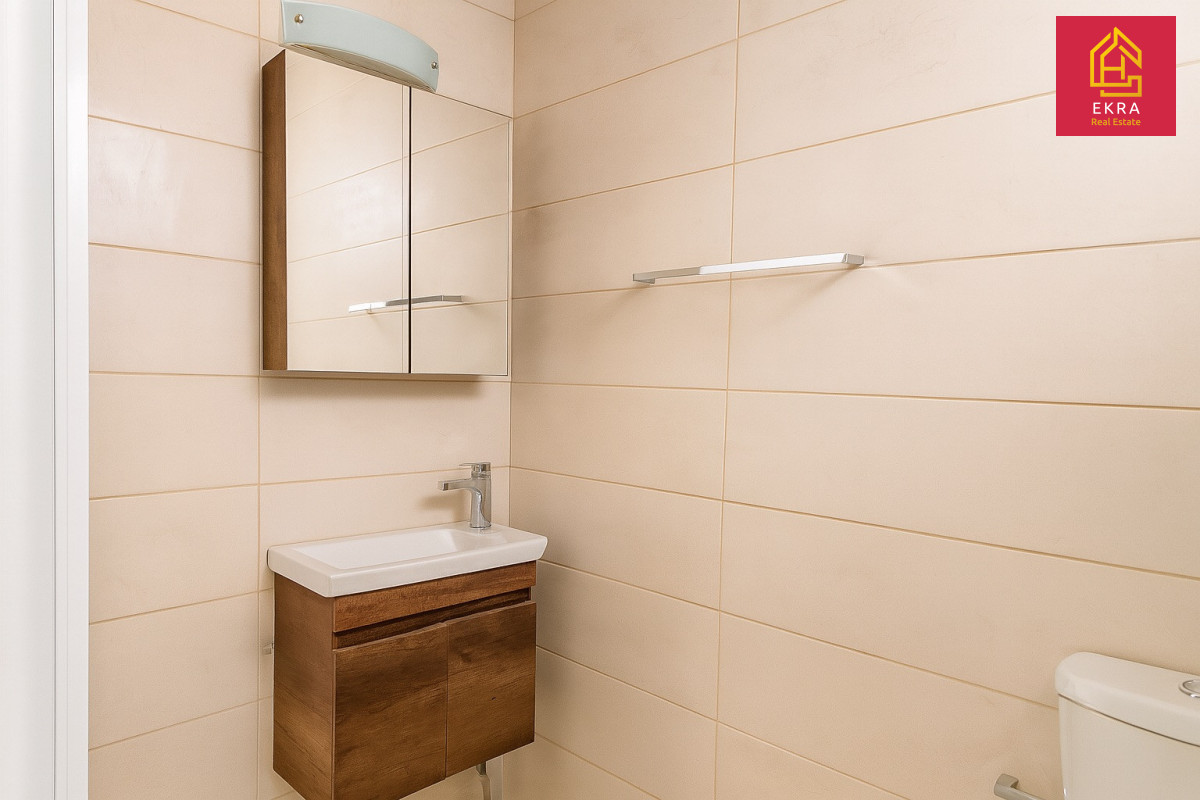 Mieszkanie znajduje się w nowym kompleksie mieszkalnym z basenem i zadbaną infrastrukturą rekreacyjną. Wnętrze jest jasne i przestronne, dzięki dużym panoramicznym oknom i wysokim sufitom.