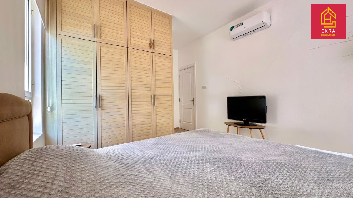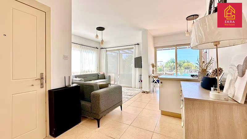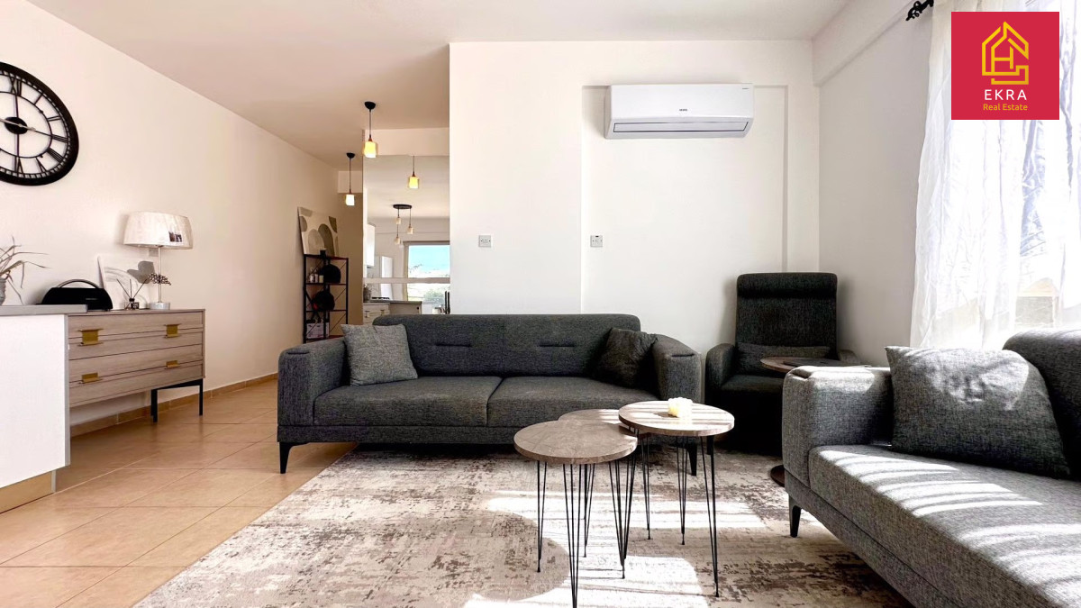 Na sprzedaż przestronny apartament 2+1 o powierzchni 97 m², w pełni umeblowany i wyposażony w sprzęt AGD. Położony w nowoczesnym kompleksie 300 m od morza, z przepięknym widokiem na Morze Śródziemne i góry Kyrenii. Idealny do zamieszkania lub na wynajem.