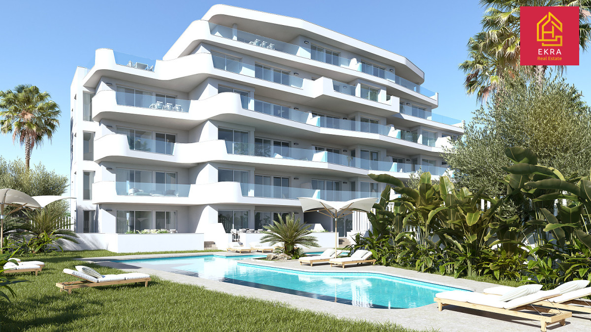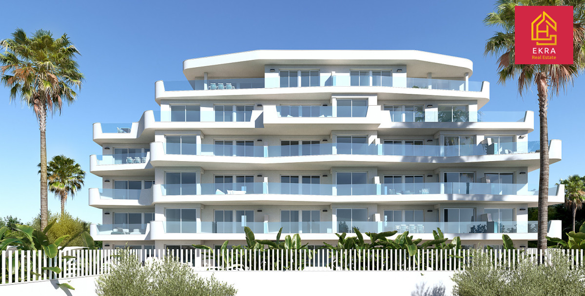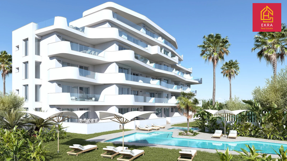 Na sprzedaż eleganckie, w pełni umeblowane apartamenty położony na środkowym piętrze w butikowym kompleksie 24 apartamentów turystycznych w prestiżowej lokalizacji Mil Palmeras, jednej z najbardziej poszukiwanych części południowej Costa Blanca.