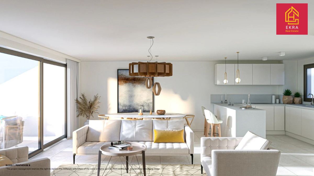 Apartamenty zaprojektowano w nowoczesnym, otwartym układzie z dużą ilością naturalnego światła. Przestronne tarasy oferują piękne widoki na morze, miasto oraz okoliczne góry.
